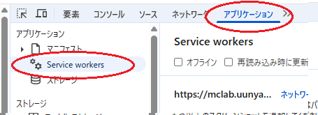 確認:Service Worker が正しく動作していない可能性があります。登録状況やエラーを確認してください。